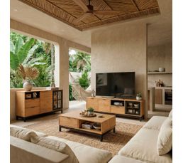 Meuble Tv Ethnique Edea Imitation Chene Et Noir Meuble Tv Deco