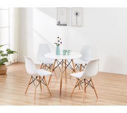 Mobilia Ensemble Table A Manger Ronde Bois Blanc Et 2 Chaises