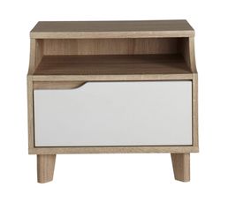 Chevet 1 Tiroir 1 Niche Nordic Imitation Chene Et Blanc Table De